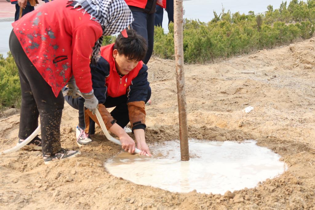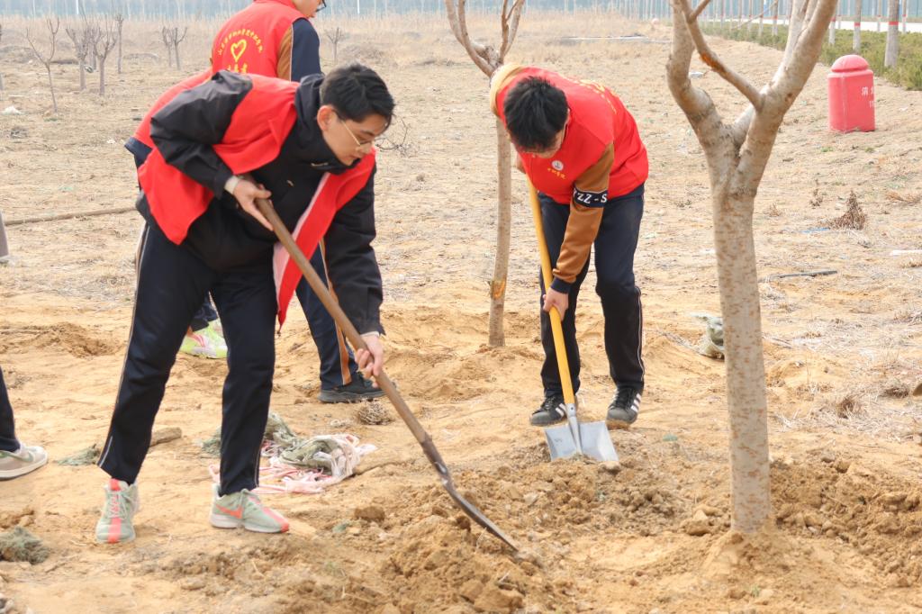 活动中,大家分工协作、配合默契,挥锹铲土、扶苗填坑、踏土夯实,个个干劲十足。一棵棵新栽种的树苗迎风挺立,为校园增添了一抹春意。虽然学生们身上都沾满了泥土,但丝毫不影响同学们的参与热情。