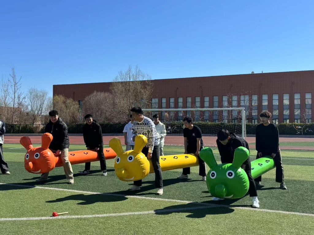 本次心理健康趣味运动会组建了18支参赛队伍,每支队伍6人。活动在有趣的热身活动中拉开序幕,本次趣味运会共有趣味跳绳、蒙眼敲锣、趣味毛毛虫、袋鼠跳4项比赛项目。每个项目都需要同学们通过团队合作、人际互动和策略制定来完成,不仅考验了同学们的智慧和勇气,更让大家在游戏中体验到运动的乐趣和人际合作的重要性。比赛过程中同学们积极思考、认真探讨比赛策略,在团队合作下顺利完成了各项比赛,展现出各自的风采。