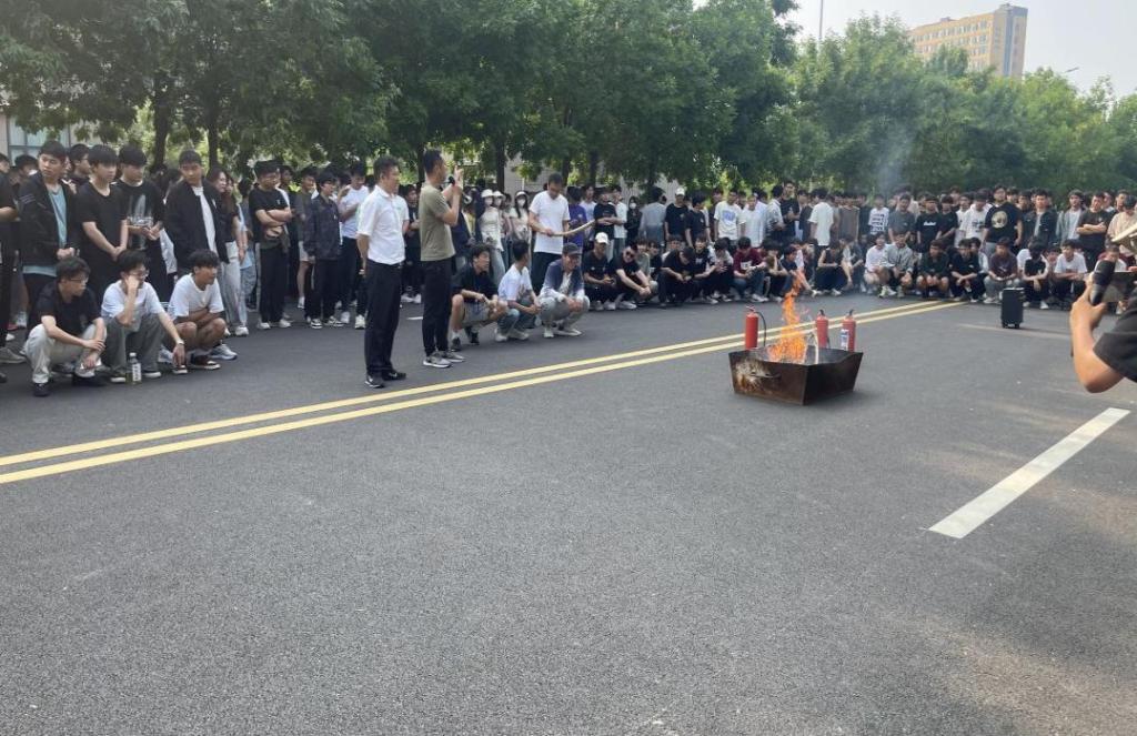 演练过程中,航海学院特此安排专业教师丁浩为大家进行了消防安全知识培训,重点介绍了火灾的危害性、宿舍发生火灾的常见原因以及预防措施,详细地讲解了火场逃生的基本原则和技巧,并现场演示了各类灭火器及其他消防器材的使用方法。在随后的实操练习过程中,大家积极参加,按照灭火步骤和方法迅速将大火扑灭。