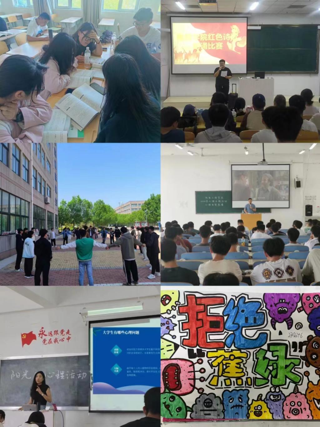 组织开展心理沙龙、心理书籍推荐、心理电影展播、心理读书分享会、团体心理活动等心理主题活动,普及心理健康知识,引导学生关注心理健康和心灵成长,提高学生心理素质。