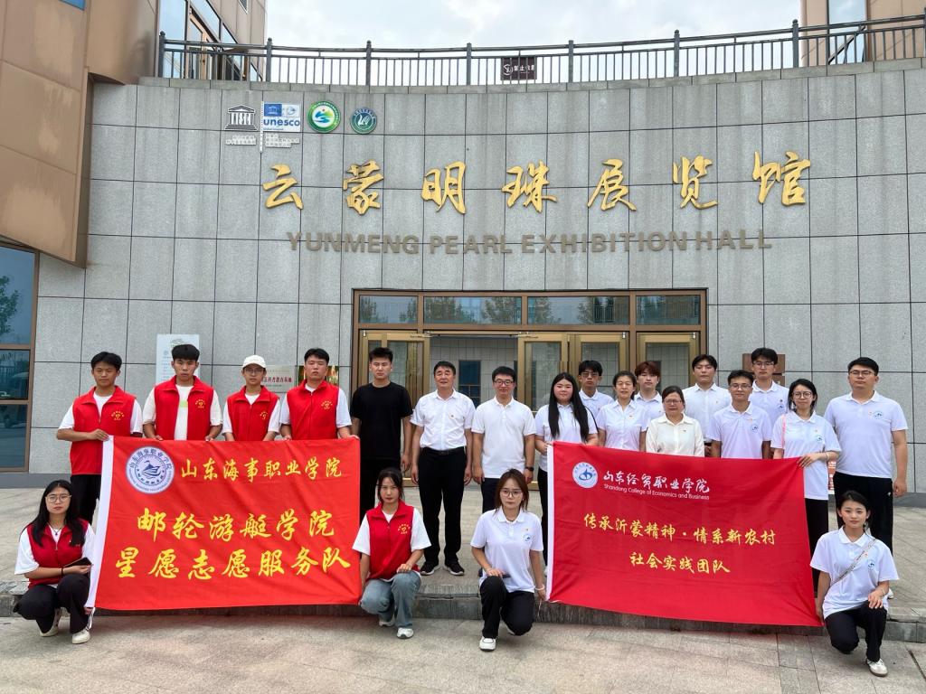 座谈会结束后,志愿队队员们与山东经贸职业学院社会实践团队学员共同参观云蒙明珠展览馆。通过总结蒙阴水利建设的基本经验,学习先进集体和英模人物的感人事迹,打造绿色生态发展,让学生们深刻理解了沂蒙精神的内涵,为推动当地的生态旅游和乡村振兴贡献力量。