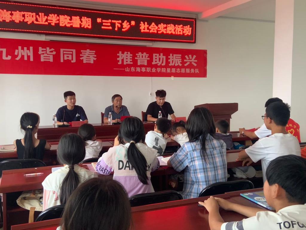 7月12日上午,邮轮游艇学院“星愿”志愿服务队在临沂市蒙阴县北太平社区开展“九州皆同春,推普助振兴”普通话培训班开班仪式,蒙阴县北太平村党支部书记石立平、蒙阴县云蒙湖生态区管委会团委书记公维磊、北太平村22名村民参加本次活动。