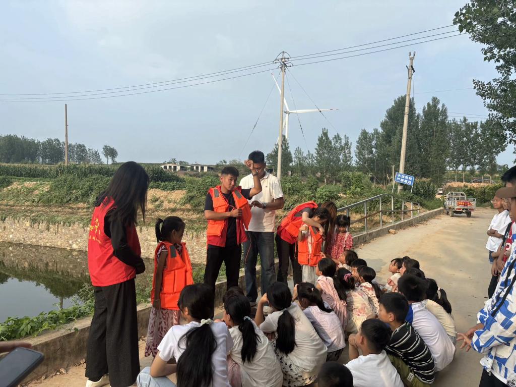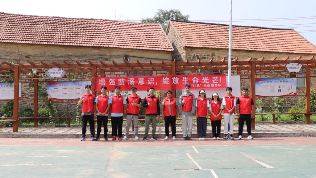为增强村民们的安全意识和自救能力,减少溺水意外事故发生。7 月 14 日,机电工程学院“红帆”志愿服务队、港航管理学院“启航”志愿队服务队分别在淄博市沂源县中庄镇南刘庄村、临沂市沂水县吴家楼子村开展防溺水宣传教育活动。