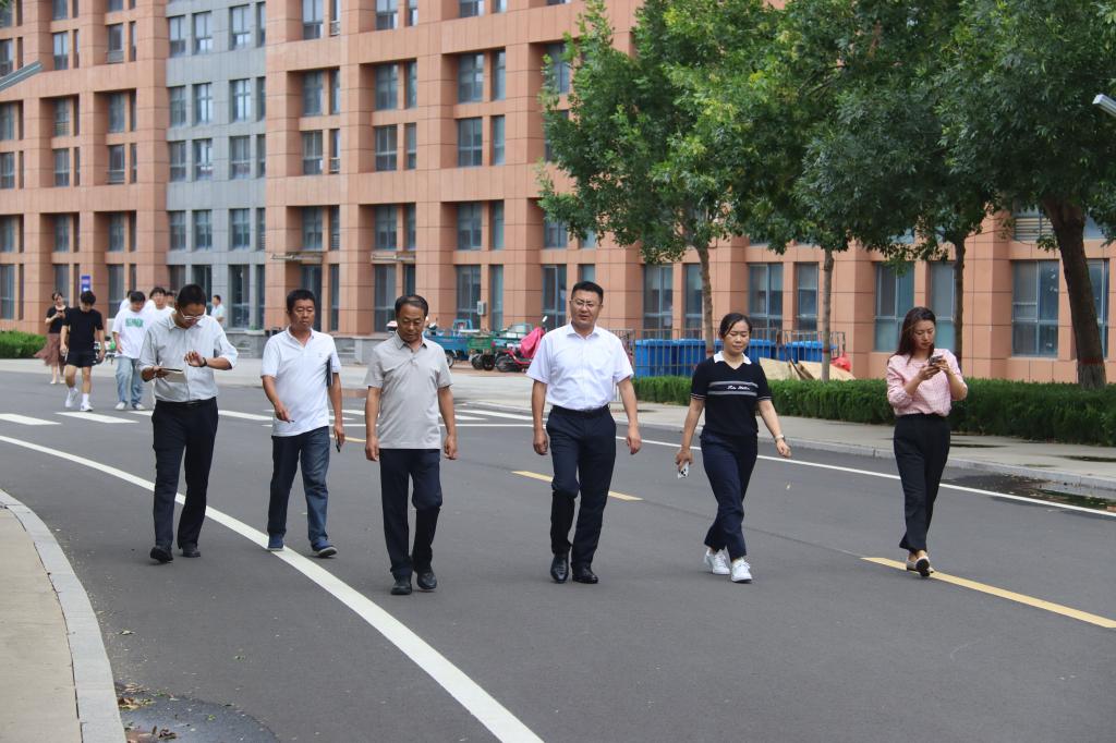 在 2024 级新生即将踏入山东海事职业学院之际,为确保迎新工作的顺利开展,徐立清校长带队前往迎新现场查看新生报到准备工作。