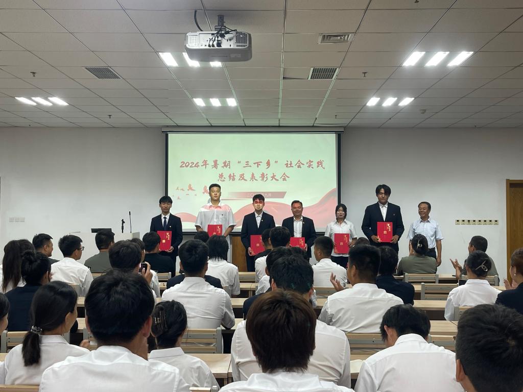 随后,大会对在暑期 “三下乡” 社会实践中表现突出的团队和个人进行了表彰。副校长宋志刚为获奖团队和个人颁发荣誉证书。