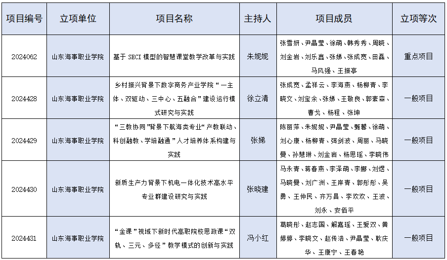 近日,山东省教育厅公布了2024年度山东省职业教育教学改革研究项目立项名单,我校斩获佳绩,共有5个项目获批立项。其中,重点项目1项,一般项目4项,立项数量较往年有较大突破。