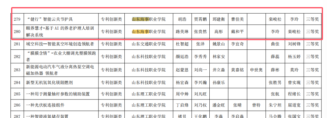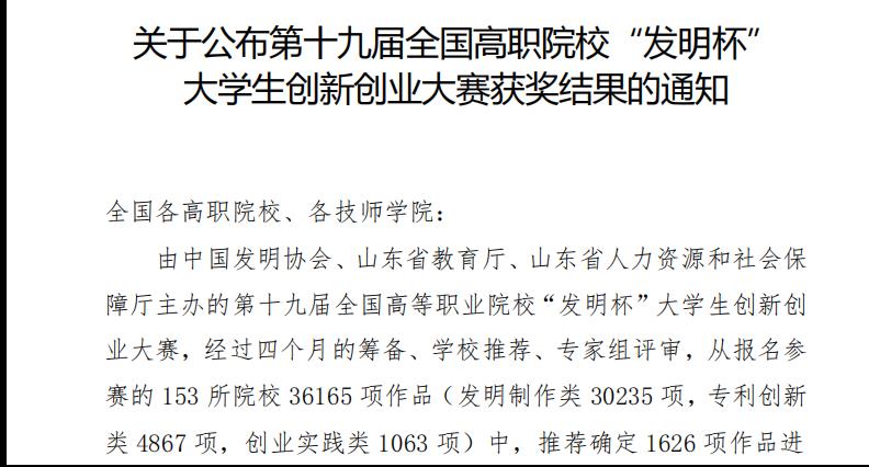 近日,由中国发明协会、山东省教育厅、山东省人力资源和社会保障厅共同主办的第十九届全国高职院校“发明杯”大学生创新创业大赛公布结果,我校健康管理学院凭借《“健行”智能云关节护具》《颐养慧才-基于AI的养老护理人培训解决系统》创新成果,在全国院校中脱颖而出,斩获三等奖2项。