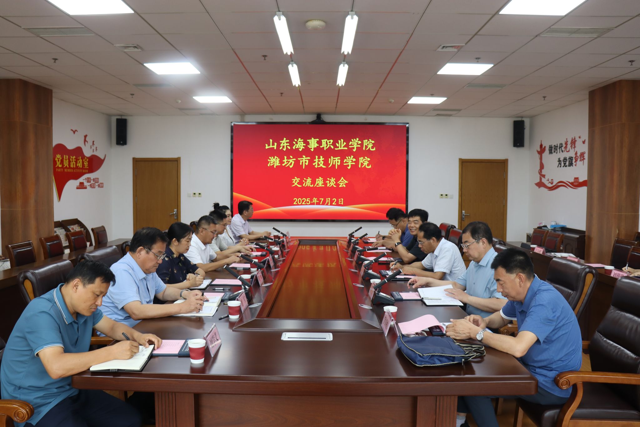 7月2日上午,潍坊市技师学院党委副书记、院长刘德强一行到我校考察交流。学校校长徐立清,校长助理王德帅、张娣及相关职能部门负责人出席座谈。