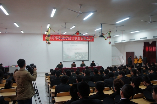 滨海武警边防派出所沈鸿周教导员为全院学生作了一场深刻而生动的法制教育报告。从“药家鑫故意杀人案”、“李启铭交通肇事案”等大学校园一个个生动鲜活、触目惊心的犯罪案例将“学生犯罪”的恶性事件呈现在学生面前,引出报告会的目的与主旨;结合大学生的实际生活向学生们讲解宣传了《宪法》、《刑法》中涉及大学生的法律知识,让广大学生了解到每位公民既是社会活动的参与者,也是法律责任的承担者,根据生理和心理的成熟程度,以及对事物的分辨能力和对行为的控制能力来承担相对的刑事责任。他从关注安全、珍爱生命、预防犯罪的角度,结合防火、防交通事故、防抢劫、防盗窃、防诈骗、防意外事故等防范知识,在增强学生生命安全意识和防范意识,遵守法律底线,增强遵纪守法意识等方面,援引大量校园发生的生动案例,详尽地为同学们们讲述了多种安全防范技巧和应对处理方法,诠释了遵纪守法和保证安全的重要性。使学生们在了解如何用法律武器保护自身权益的同时,也明白了违法犯罪行为的恶劣后果。沈鸿周教导员的报告紧扣职业学院学生特点,从“如何避免走上违法犯罪道路”和“如何保护自己的安全,不受犯罪分子的伤害”,教育学生既要遵纪守法,又要善于保护自己,使学生明白如何在受侵害时避免受到伤害。他旁征博引、引经据典、深入浅出、亦庄亦谐、坦诚自然,以“勿以善小而不为,勿以恶小而为之”的箴言结束了这次生动而教育意义深刻的法制报告会,赢得了在场学生的一片掌声。