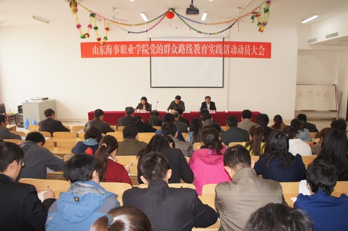 2014年3月26日下午,为贯彻落实中央、省委、市委局党委的要求,深入开展党的群众路线教育实践活动,我院隆重举办党的群众路线教育实践活动动员大会,市教育局副局长李广敬、高教科王先玲应邀出席会议,院长王敬良,副院长廖木星,院长助理季星渡、徐立清、仉继航及全体教职工参加了会议。王院长作了动员讲话,部署我院下一步党的群众路线教育实践活动工作,李广敬局长代表监督组传达市教育局相关精神。