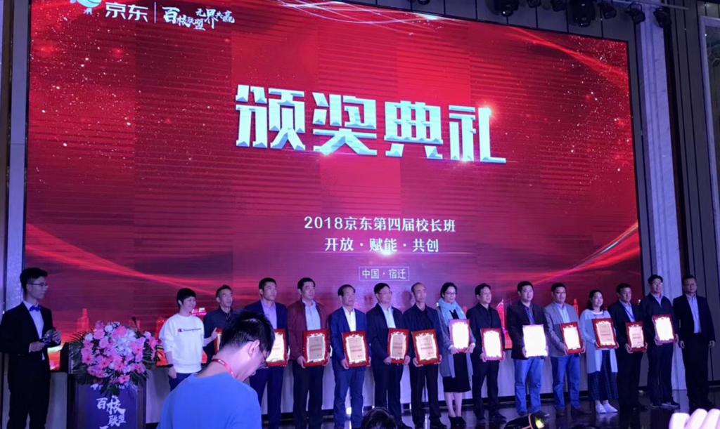 鉴于学院与京东的良好合作,学院荣获京东“优秀合作院校”奖,获得该奖项的一共有十四所院校。学院党委书记、院长王敬良代表学院在本次京东校长班活动上领取了该奖项。