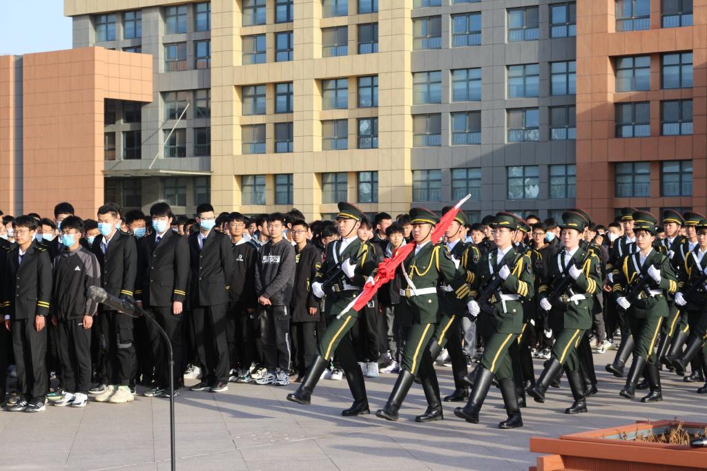 升旗仪式结束后,由学生代表王文豪领读我校学风、教风、校训和院长赠言。随后,仉继航副校长发表讲话,他强调,2021年是建党100周年、“十四五”开局之年、也是我校建校10周年,回首过去的2020年,我们步履坚实,撒下了汗水,取得了成功,收获了喜悦,学校各项工作都实现了新跨越。同时,向全体师生提出了三点要求,首先,希望我们全体教师都向着专业化方向不懈努力。其次,希望同学们无论学习还是做事都要有目标、有计划。第三,要锻炼身体,强壮身体是我们工作、求学、做事最重要的资本。号召我校广大师生在党的坚强领导下,承前启后、继往开来,不负重托、不辱使命,以更加饱满的热情和更加务实的作风,乘势而上、阔步向前,努力书写学校发展的新篇章。