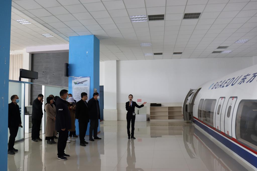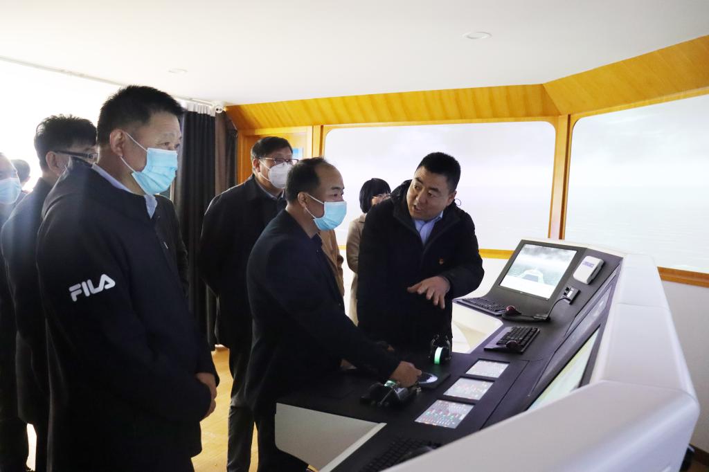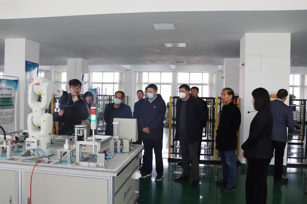 座谈后,洛阳市教育局副局长乔思军一行在校长王敬良等校领导的陪同下实地参观考察了学校模拟船实训基地、航空实训基地、国际海洋工程(OPITO)实训基地、工业机器人实训基地及航海仿真实训基地。
