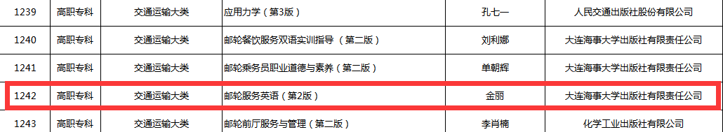 近日,根据教育部发布的《关于拟入选首批“十四五”职业教育国家规划教材名单的公示》文件获悉,由我校金丽教授主编的《邮轮服务英语》教材成功入选“十四五”职业教育国家规划教材序列。