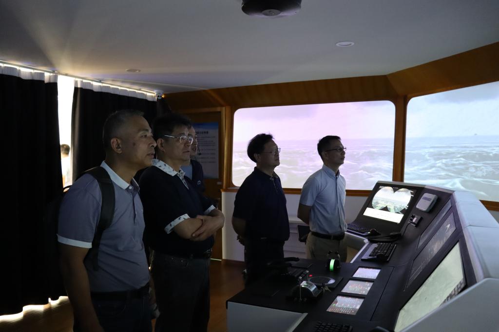 座谈后,广东水利电力职业技术学院党委书记黄涛一行5人在执行校长徐立清、宣传统战部部长王德帅的陪同下实地参观考察了我校航空实训基地、航海实训基地、国际海洋工程培训中心(OPITO)、工业机器人实训中心、航海虚拟仿真实训中心及电商校园实训中心。
