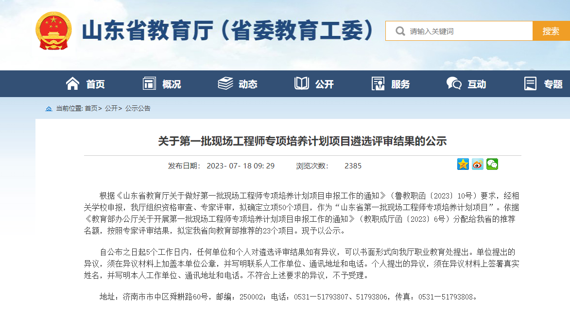 7月18日,山东省教育厅发布关于第一批现场工程师专项培养计划项目遴选评审结果,我校与山东星科智能科技股份有限公司联合申报的《山东海事职业学院+山东星科智能科技股份有限公司+装备制造大类+自动化类+机电一体化技术专业群现场工程师联合培养项目》成功通过立项。