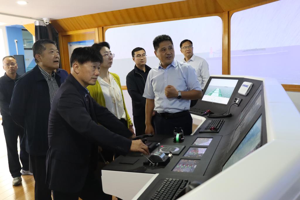 10月12日,湖南省株洲市委二级巡视员、湖南九郎山职教科创城提质升级厅市联合专班副主任尹光良一行8人来我校交流考察混合所有制办学,并在党委副书记、执行校长徐立清,党委委员、副校长吕明,党委委员、党政办公室主任王德帅陪同下实地考察参观了学校海洋工程培训中心、博能新能源电力产业学院实训基地、邮轮运营服务虚拟仿真实训基地、航海仿真实训中心。考察过程中,双方围绕学校混合所有制办学运营管理机制建设,就产教融合、校企合作、人才培养、师资队伍建设、产业学院办学路径、社会培训机构建设等相关混合所有制办学发展问题进行了深入交流研讨。