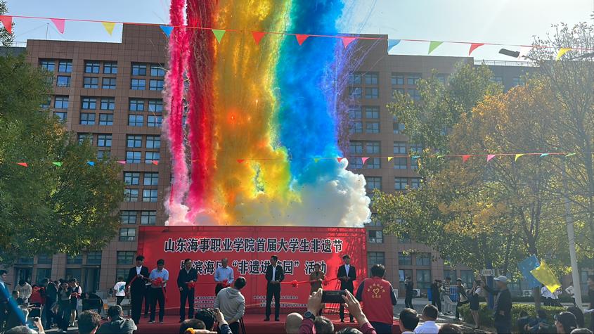 为推动非遗文化的传承与弘扬,提升学生们的文化自信与艺术鉴赏能力,10月25日,在潍坊市文化和旅游局的指导下,山东海事职业学院、潍坊滨海区文体旅游产业发展中心、潍坊市非物质文化遗产保护协会联合主办,共青团山东海事职业学院委员会、邮轮游艇学院、潍坊市非物质文化遗产保护协会传统食品专业委员会共同承办了山东海事职业学院首届大学生非遗节暨滨海区“非遗进校园”活动。此次活动在学校中央大道盛大举行。