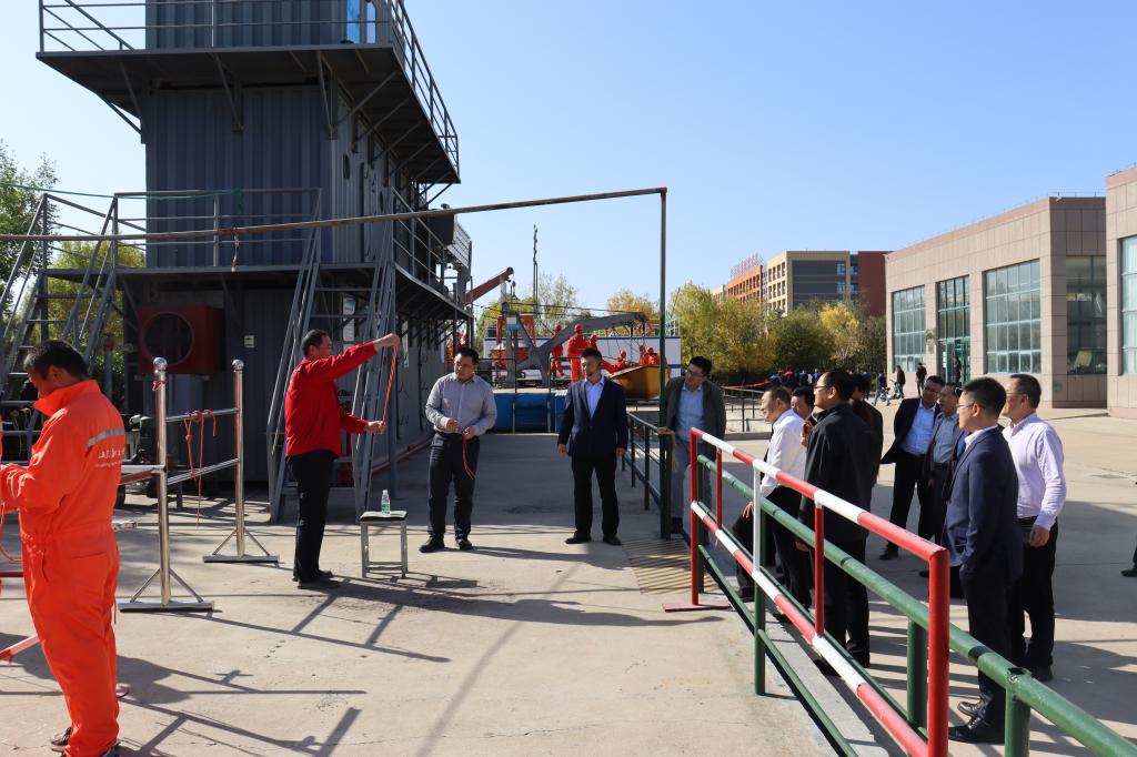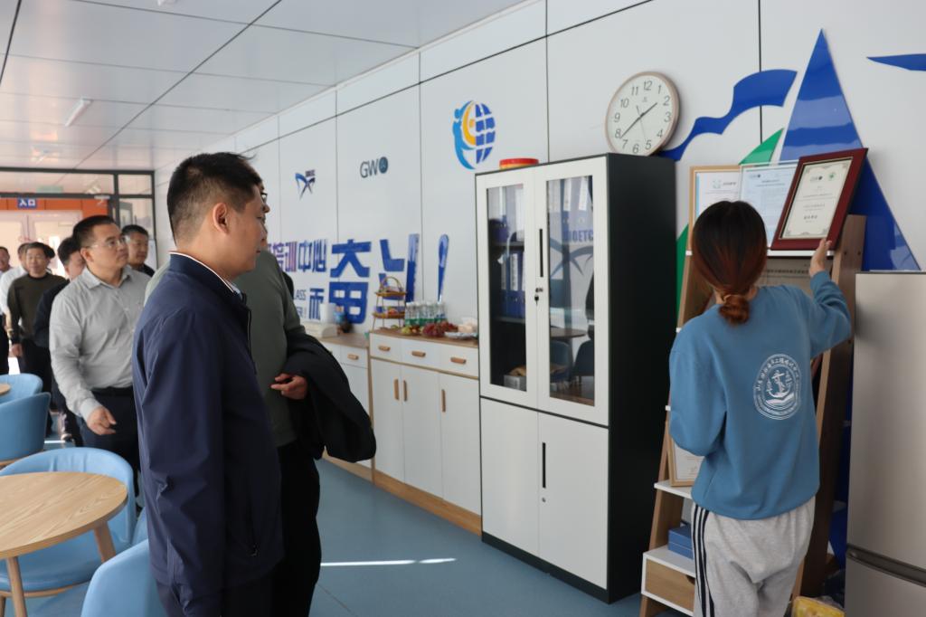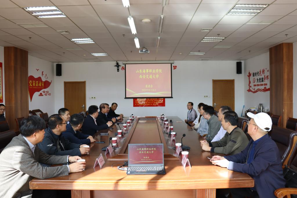 座谈会后,西安交通大学招生组组长魏泽龙一行在潍坊市教育局党组成员、副局长,潍坊一中党委书记井光进,潍坊市产教融合研究院院长田元训,潍坊市产教融合研究院相关同志,学校董事会董事郭宪勇,校长王敬良,执行校长徐立清,副校长宋志刚,党政办公室主任王德帅的陪同下实地参观考察了航海模拟船实训中心、航空实训基地、国际海洋工程培训中心等,并就相关校企合作路径、人才培养模式等问题与我校进行了进一步沟通与探讨。