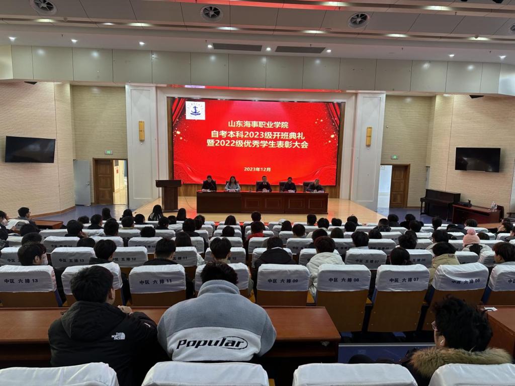12月7日下午,学校2023级自考本科班开班典礼暨2022级自考本科班优秀学生表彰大会在图书馆报告厅隆重举行。副校长吕明出席会议,港航管理学院、机电工程学院、教务科研处、继续教育学院等部门负责人及部分师生代表参加会议。