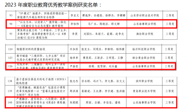 近日,山东省职业技术教育学会发布了2023年度职业教育优秀教学案例和2023年度“超星杯”职业教育优质课堂教学获奖名单。