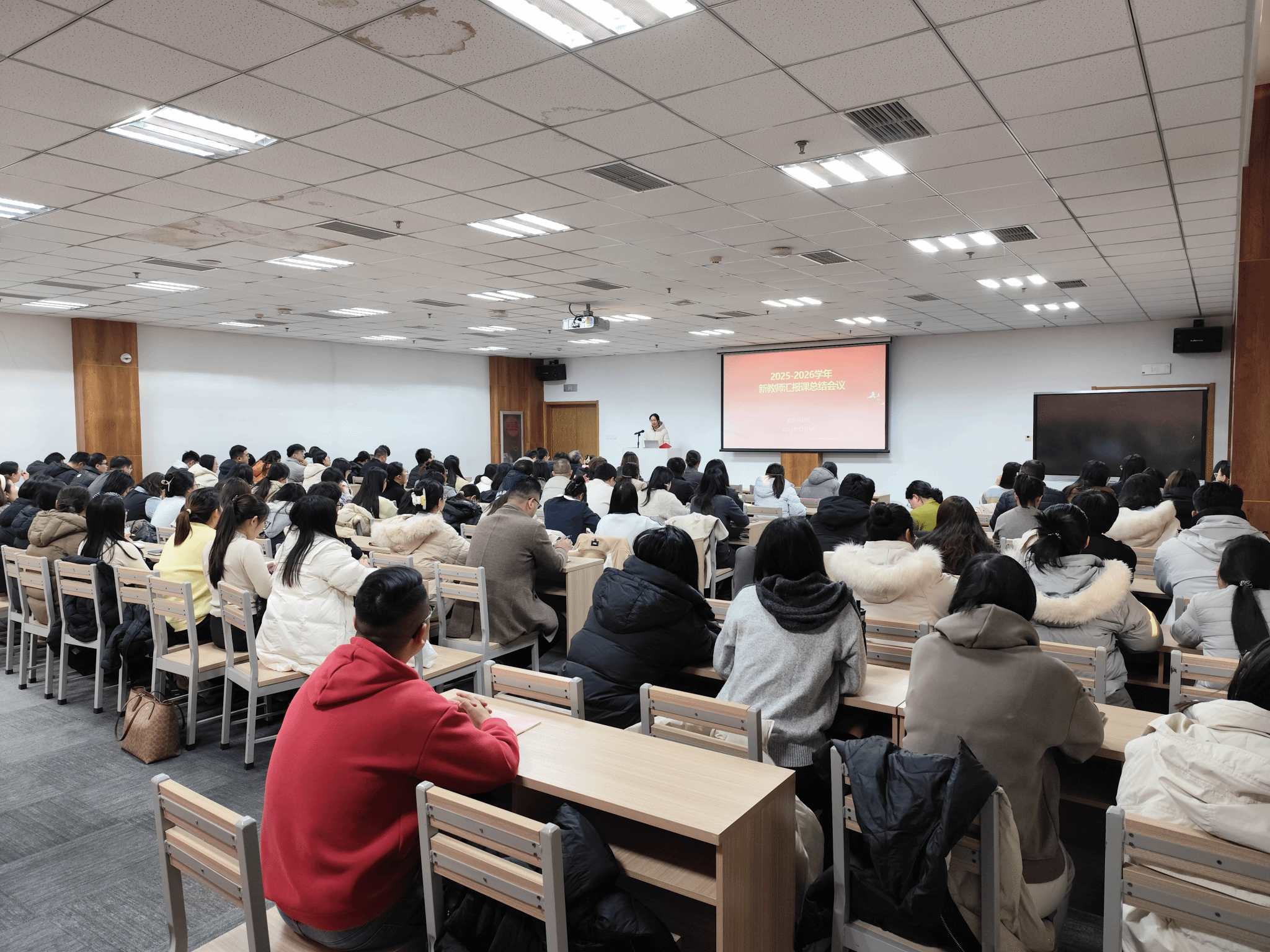 为扎实推进新教师队伍建设,助力青年教师积累教学经验、明确成长方向、提升育人实效,近日,教务科研处在第二信息化教室组织召开2025-2026学年新教师汇报课总结会。会议由教务科研处副主任马晓曼主持,教授督导室专家、各教学单位分管负责人,以及本学期参与汇报课的新教师共同参会,交流教学心得,探讨育人之道。