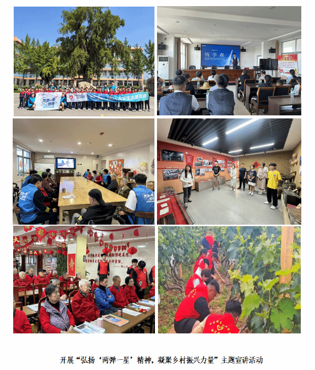 特别是在2025年暑期“三下乡”社会实践中,宣讲团奔赴临沂市沂南县铜井镇,将“两弹一星”精神宣讲带到乡村振兴一线。在范家庄村党群服务中心,他们面向老党员和群众,讲述钱学森、郭永怀等科学家的感人事迹;在两泉坡村、三山沟村的村史馆,他们担任义务讲解员,并聆听老前辈口述红色往事;他们向铜井镇中心小学捐赠图书,并为孩子们带去精心准备的红色故事会。这些深入基层的实践,让宣讲员们真正理解了“从群众中来,到群众中去”的深刻含义,也让红色精神在田间地头生根发芽。
